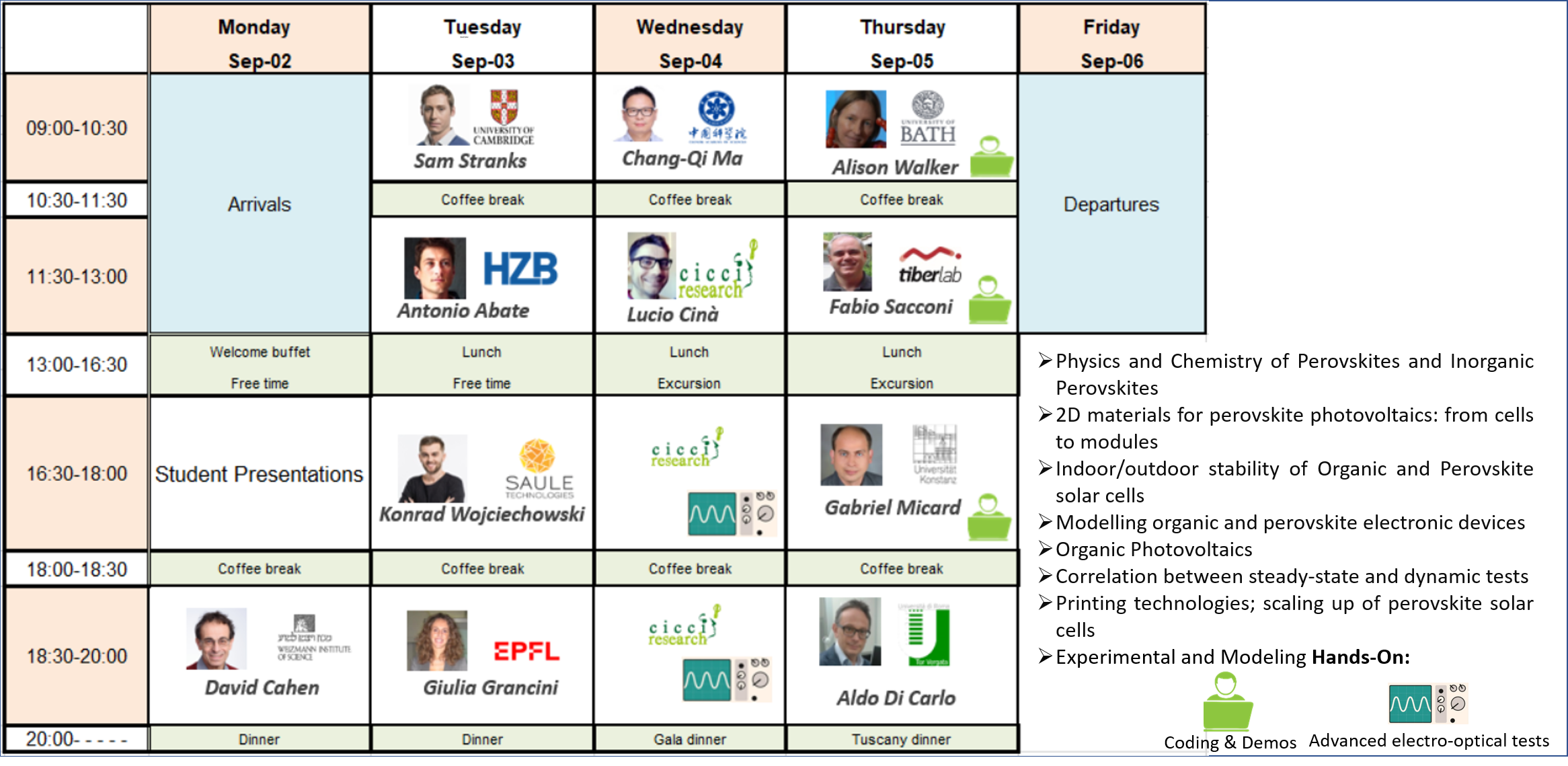 Each student will give a 5 minutes (max) presentation concerning activities, educational background or any interesting information about himself or his research group. In case of students coming from the same group, a presentation of 10 minutes can be done for the whole group, as preferred.